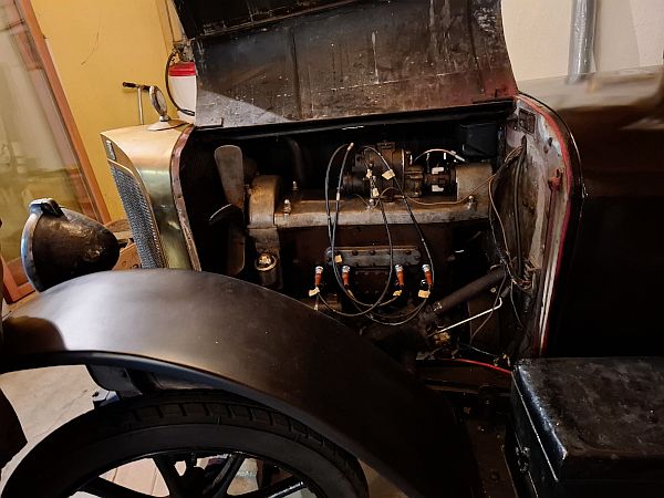 Automotor im Stand warmlaufen läßt, was im Innenhof
